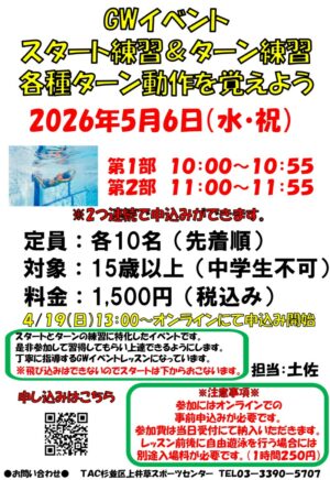 2026年04月19日:5/6(水・祝)GWイベント『スタート練習&ターン練習』~各種ターン動作を覚えよう~ 開催のお知らせ